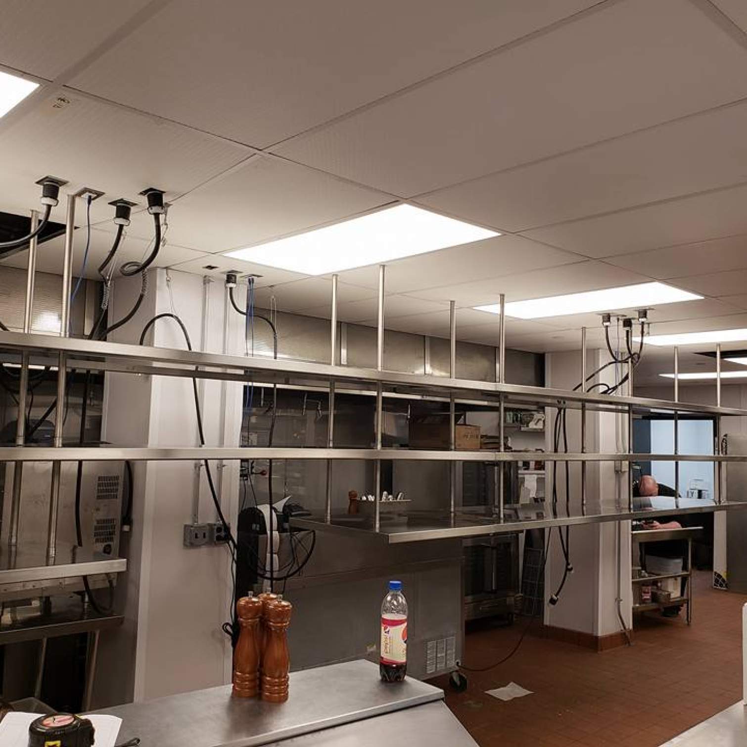 This shelf totaled a span of about 20 feet long and was mounted directly to the unistrut joists across the ceiling beams for maximum strength and stability. The shelf will help the restaurant run smoothly and efficiently from chefs to servers with room for at least 50 plates at a time to help accomodate a banquet of about 200 people! No matter how difficult or big the job is, Bear Metal tackles it head on and makes sure everything is done to the customers satisfaction! Another install complete by Bear Den Services as well.