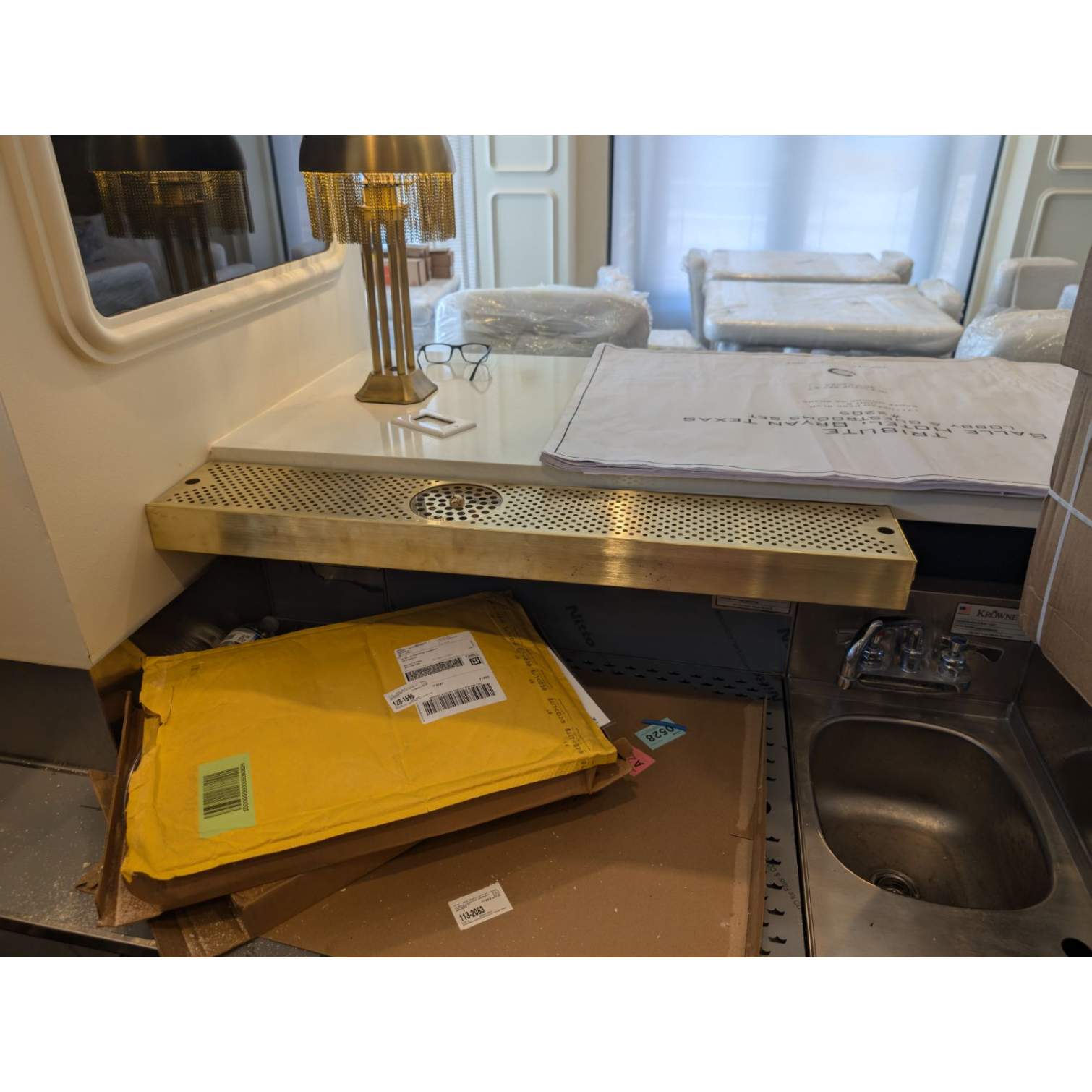 Bear metal specializes in drink rails and even natural raw brass ones! These were counter mounted and we provided drains and glass rinsers as well to match the brushed finish!