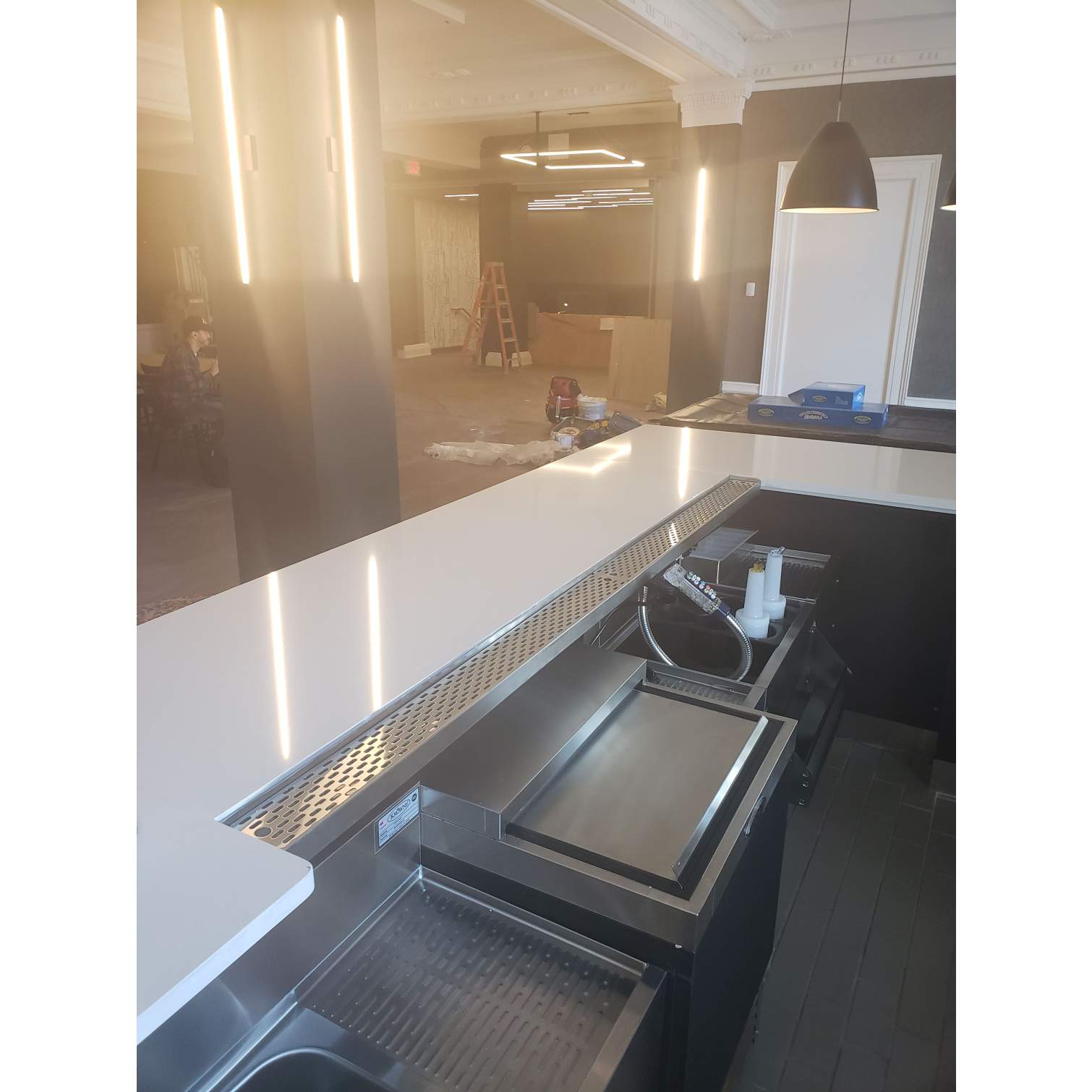 Bear Metal Works is your go-to fabricator for custom drink rails. This one was recently installed at the Wxyz Bar in the new Aloft Hotel lobby bar. Our drink rails are all 16ga stainless steel and have removable tray inserts with a custom slot hole pattern. Another great install by our Bear Den team as well!