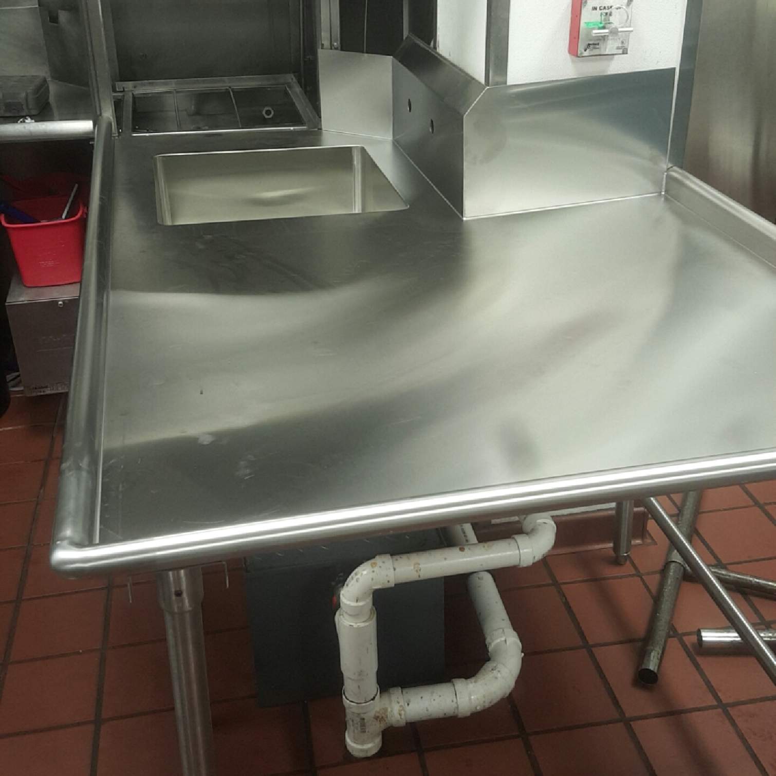 Denler Stainless recently designed and fabricated a brand new stainless steel dishwasher station for the kitchen at Tappo Restaurant. The previous station was too small and causing dishes to fall and break. Denler went to the kitchen, measured and came up with a larger and more convenient design for the workers to use. We nearly added three feet of counter space for the dishes to be placed on before they go through the washing process. Holes were cut out for the faucet and a sink was welded in to ensure no leaks. Bear Den Services removed the old sink and brought the new one in place for Tappo.