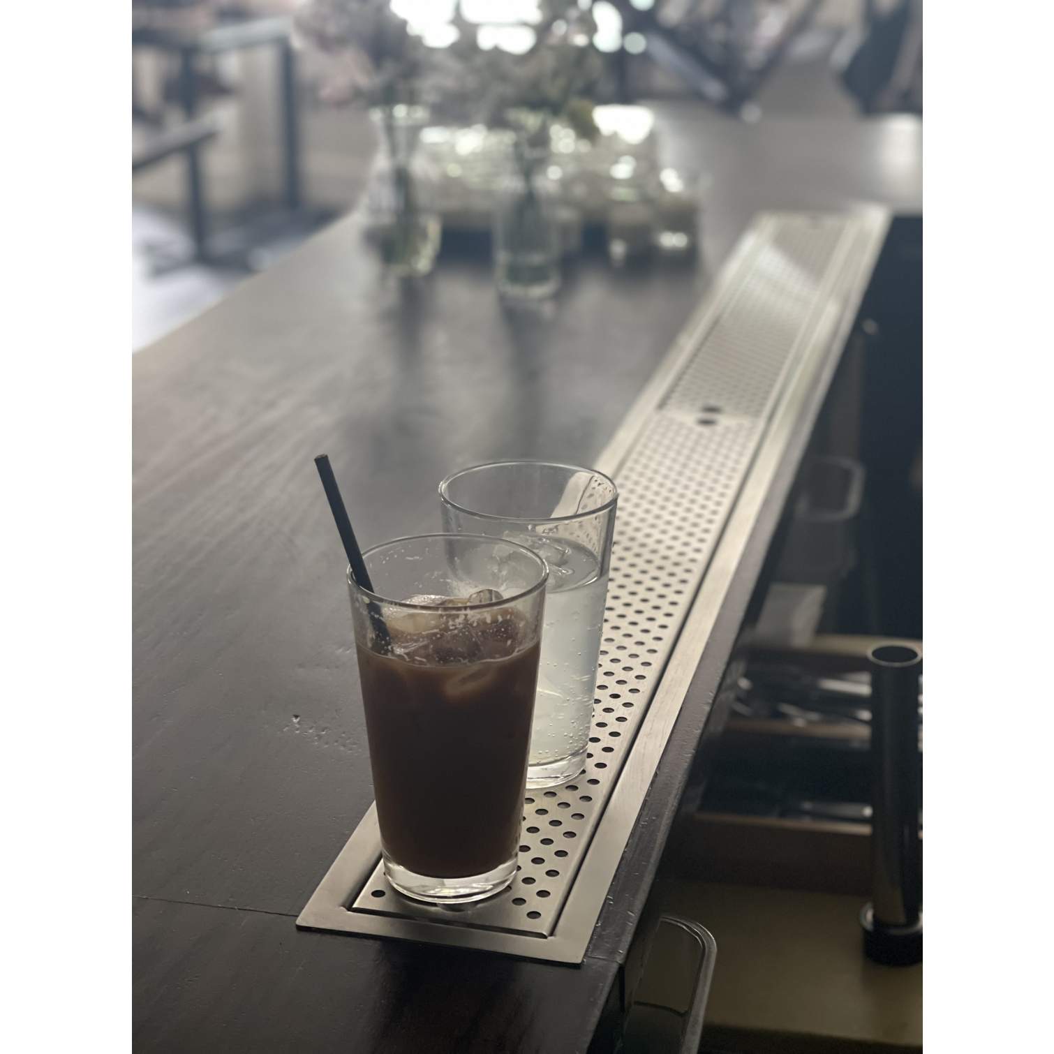 Bear metal fabricated another custom drink rail for the Chez ma Tante restaurant in NYC. This was a flange drop in drink rail that rests in the customer milled out bar top. We provided a drain for easy clean up from spills and custom perforation tray.