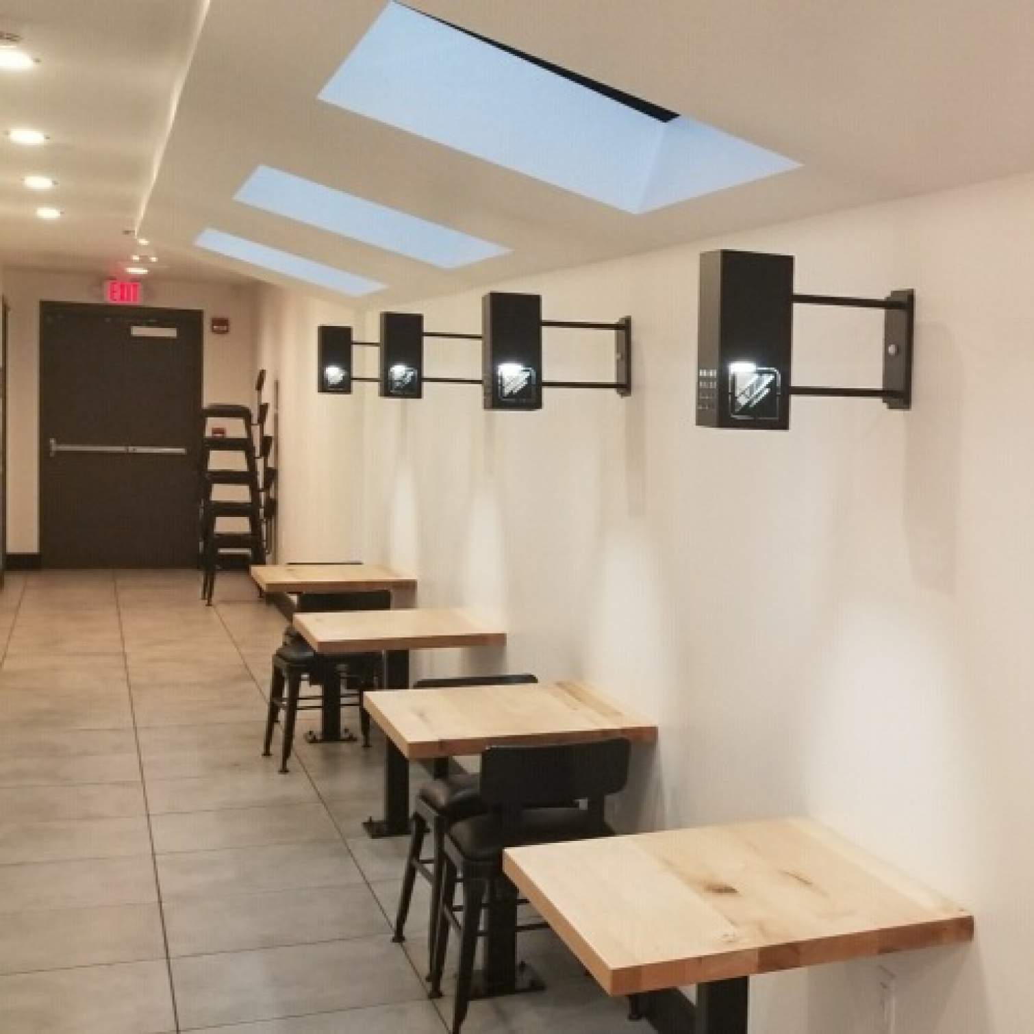 Bear Metal designed and fabricated these custom wall light sconces for Rachel's Mediterranean restaurants. These were designed entirely at BMW to give the customer a sleek and industrial look while incorporating their logo. The customer wanted something recessed off the wall while still being functional to hide wires and give off enough light. We think they came out pretty awesome!