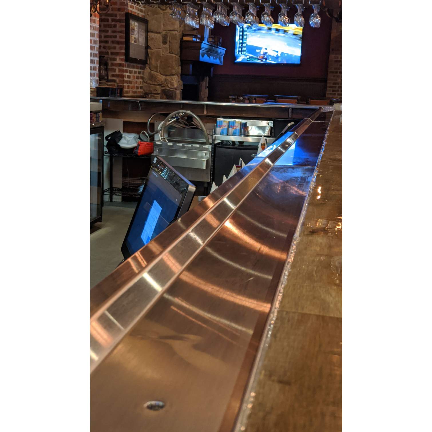 Check out this custom marine edge drink rail we fabricated for Santora's Pizza Pub and Grill on Transit Rd. After their beautiful bar remodel, Bear Metal went in for field measurements, custom fabricated and installed this awesome drink rail. Marine edge gives the bartenders more stability for knocking drinks against and leaves a nice finish on the front edge so no water can escape.