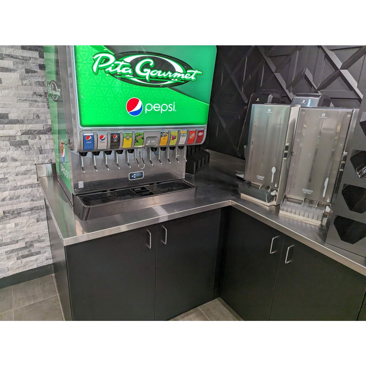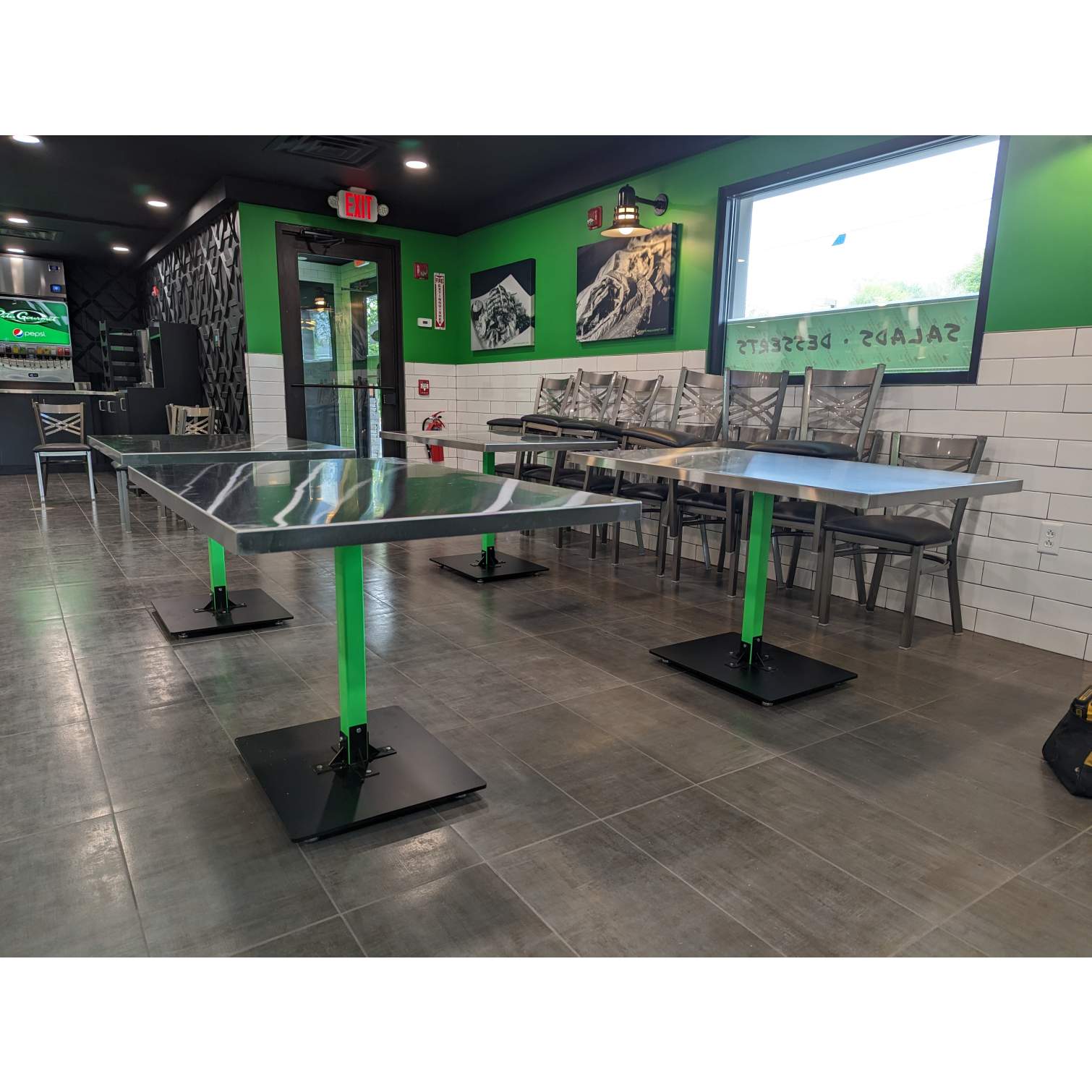 Bear Metal has become the custom fabrication choice for many new restaurants in the Buffalo area and this one displays a lot of our capabilities. The new Pita Gourmet in Hamburg shows off all of our custom stainless abilities along with signage and table bases. We fabricated kitchen equipment tops, tray line, window seat countertop, table tops (with logo etching) and more. The custom table bases were our favorite as the two tone powder coat (green and black) really stands out! Go check out our work and have some awesome food!