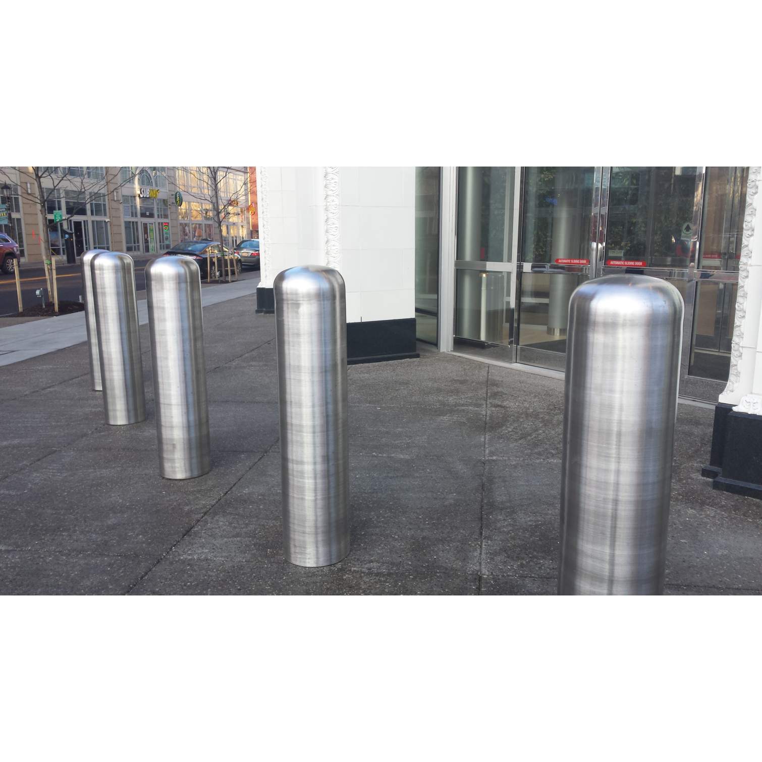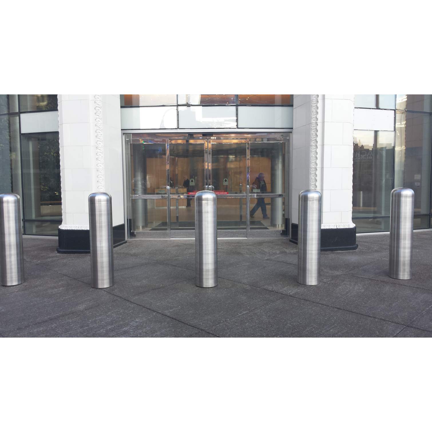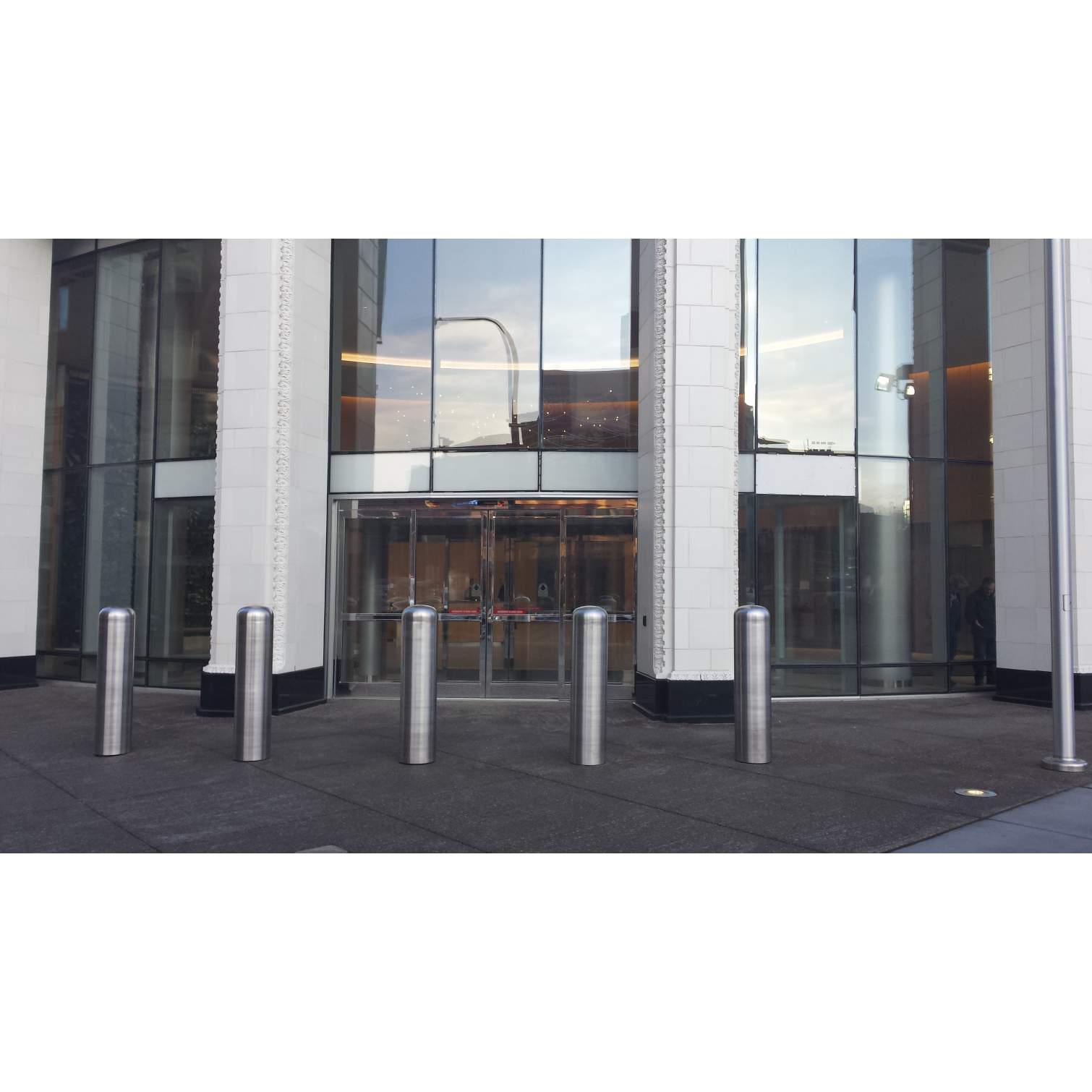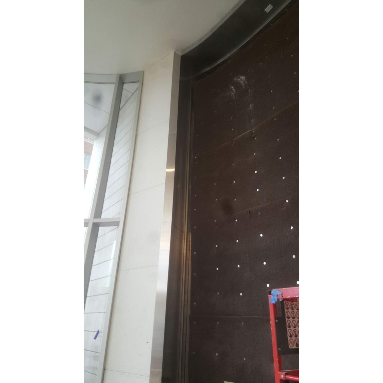 Denler Stainless took on a very precise and date driven job for the new Uniland building at 250 Delaware Ave., and got it done. This custom stainless steel frame for the "Bio Wall" in the lobby of the building had to be measured and fabricated to perfectly fit the wood and drywall that was put up. Custom pieces were made to fit the radius along the top while being installed on a man lift twenty-feet in the air. These pieces had to be secure enough and held in place by tabs and screws into the buildings drywall/wood. We then cut out spots for the outlets where lights/water will be hooked up to keep the plants fresh and healthy. Along the sides, we fabricated panels that would have the seams line up with the finished wood pieces going throughout the lobby. At each seam we trimmed them off with thin stainless pieces to cover up, leave no gaps and will ensure no rust and an easy clean up for maintenance. This "Bio Wall" is complete with living plants and vines etc. Also, in front of the building, Denler Stainless fabricated and polished five custom concrete post caps for the barrier outside the building. This gave the building a unique and eye-catching appearance rather than regular concrete posts. These pipes were unpolished to begin with and after welding the caps on top we made sure they looked great with the shiny grain look of a #4 polish. Denler Stainles and Bear Den Services can now say they had a part in creating Buffalo's newest and most exciting building that should be open soon!