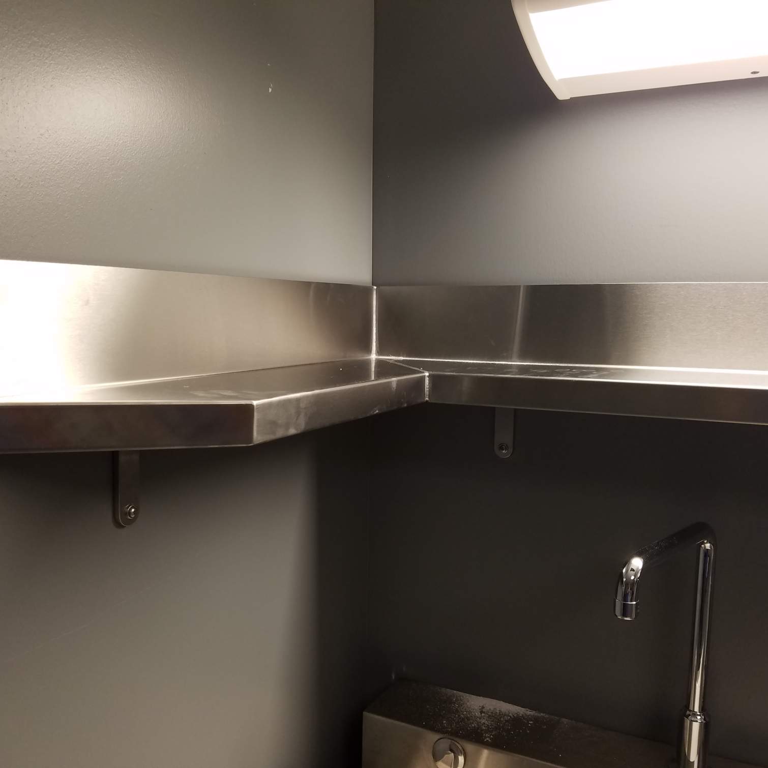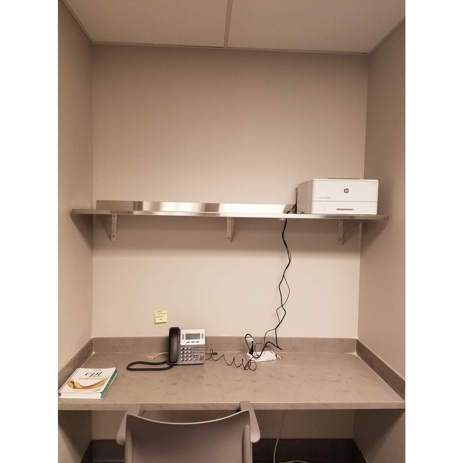 Bear Metal Works made custom stainless steel shelving throughout the new Ambulatory Surgery Center of WNY in Amherst, NY. Above the sink "U" shelves, locker room shelves, printer shelves for the doctors and more. Custom sizes and precise installation by Bear Den Services.