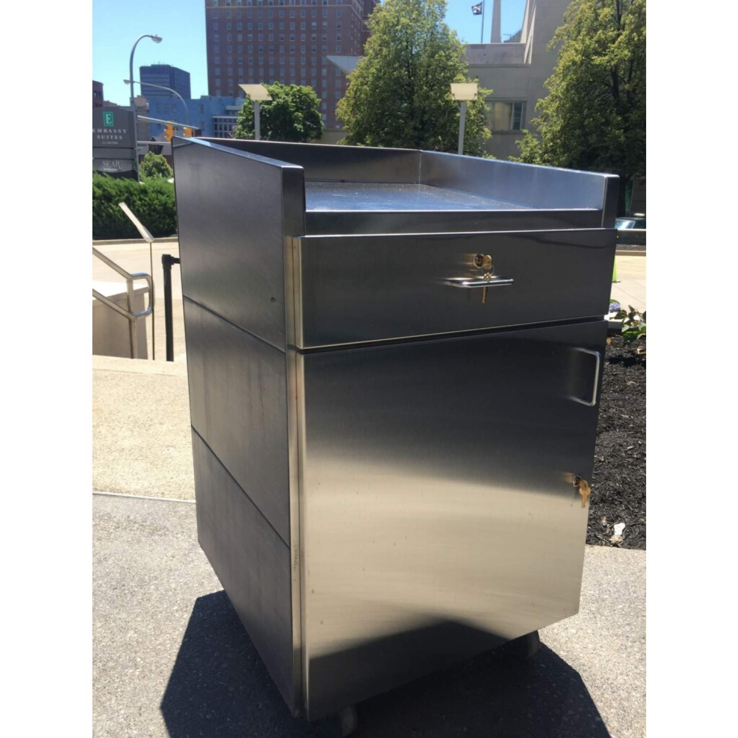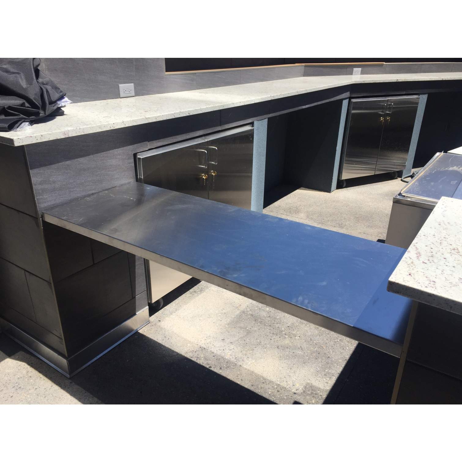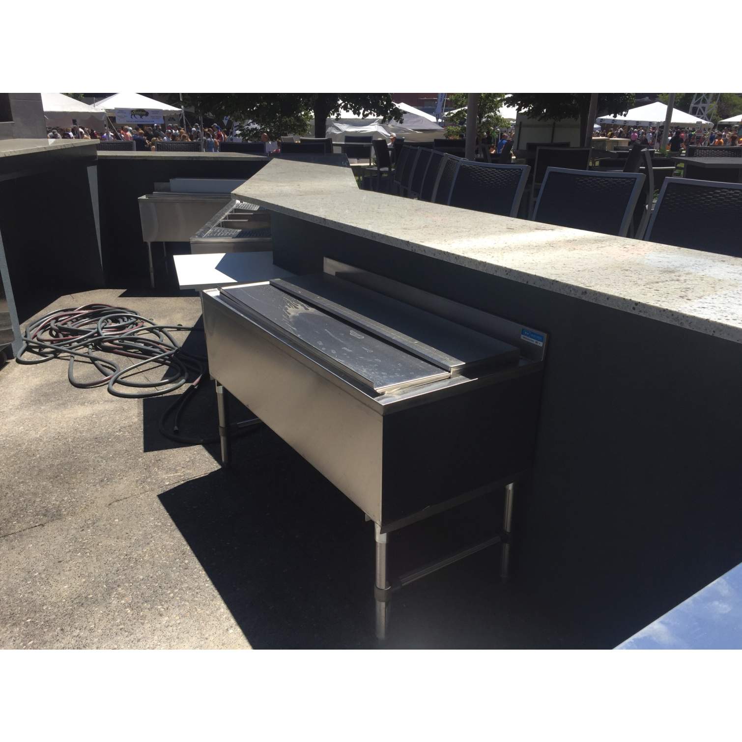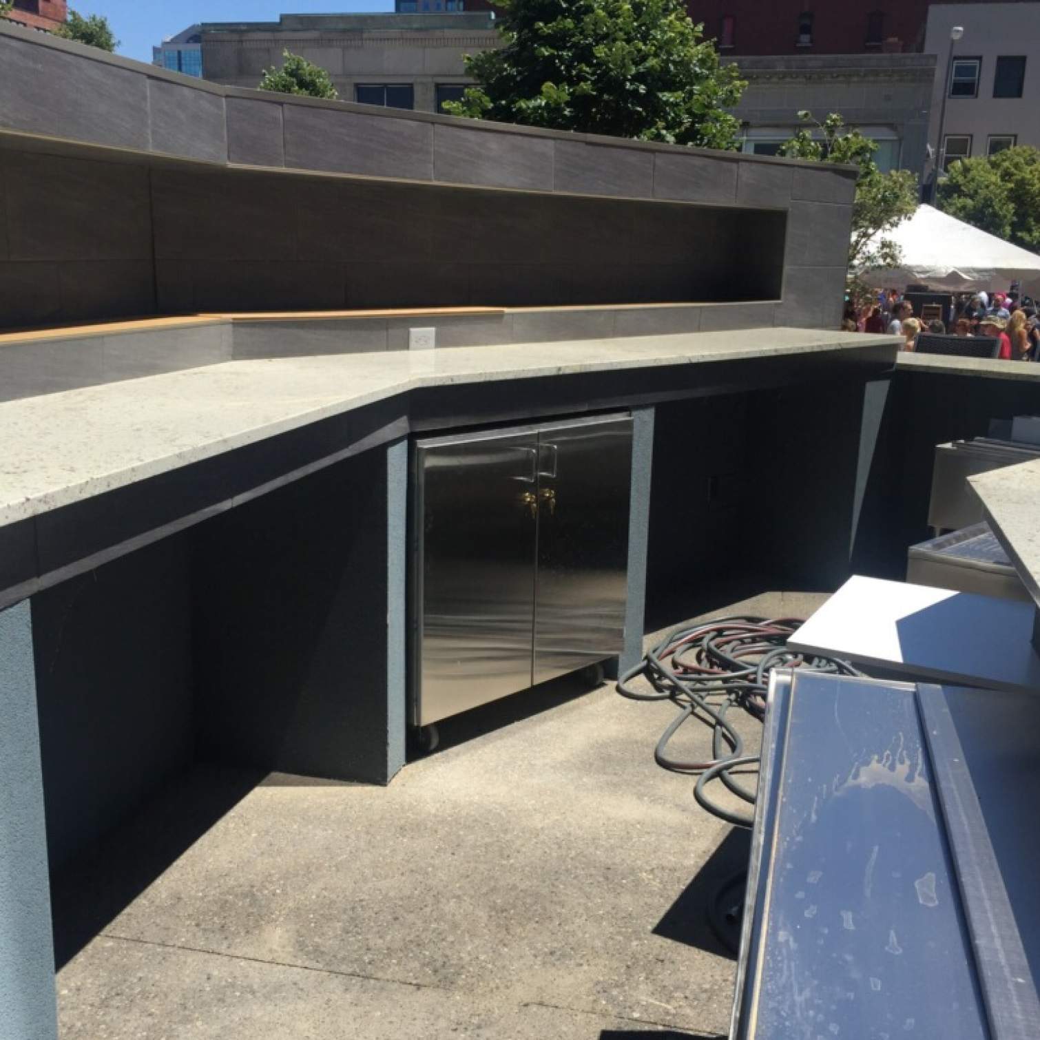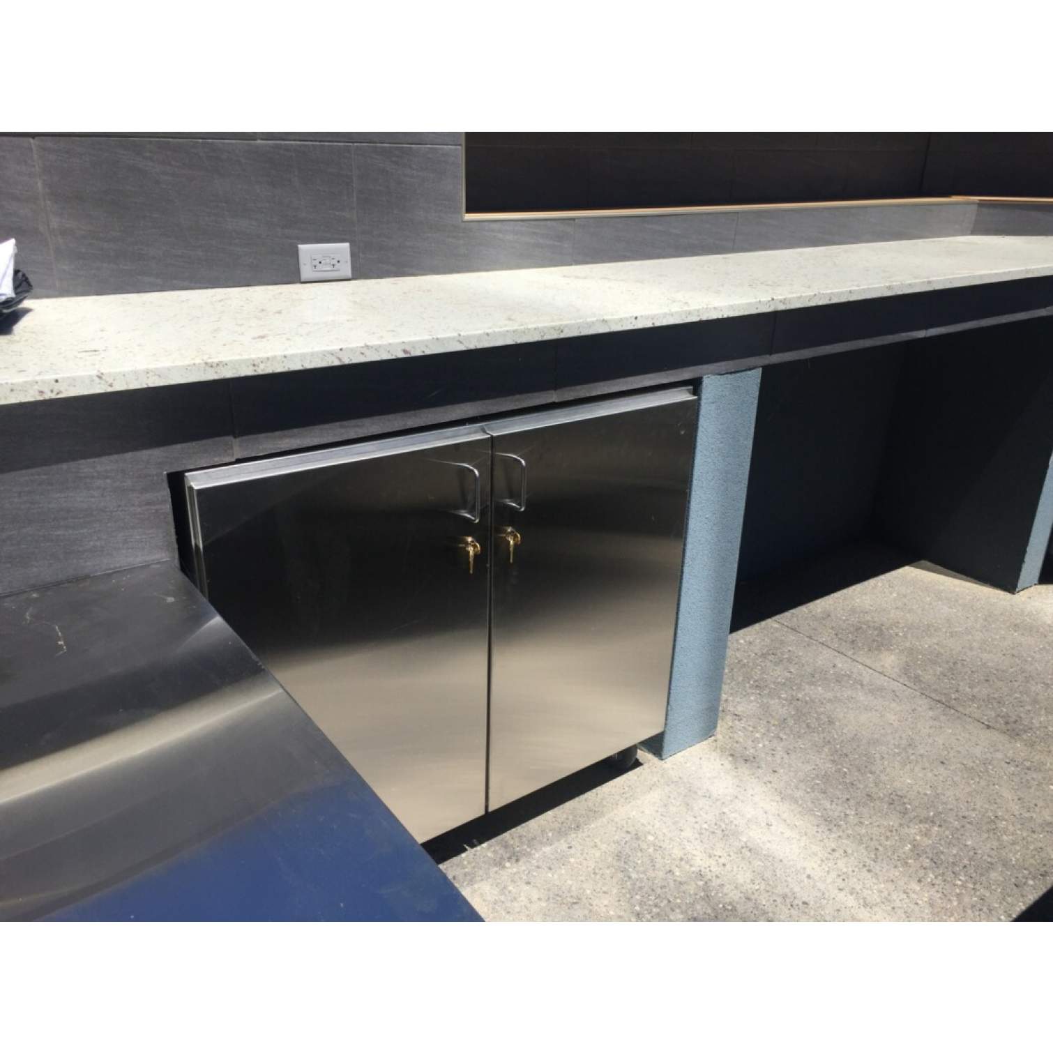 Bear Metal Works recently completed a project for the new patio at Sear Restaurant in downtown Buffalo. These cabinets were brought to us and we custom fit and covered them all in stainless steel, which is food grade ready and gives that clean and modern look this restaurant is looking for. These cabinets go underneath the bar, alongside the seating area and some are on casters and covered with granite for mobile use by the staff. Check it out next time you are having a drink this summer!