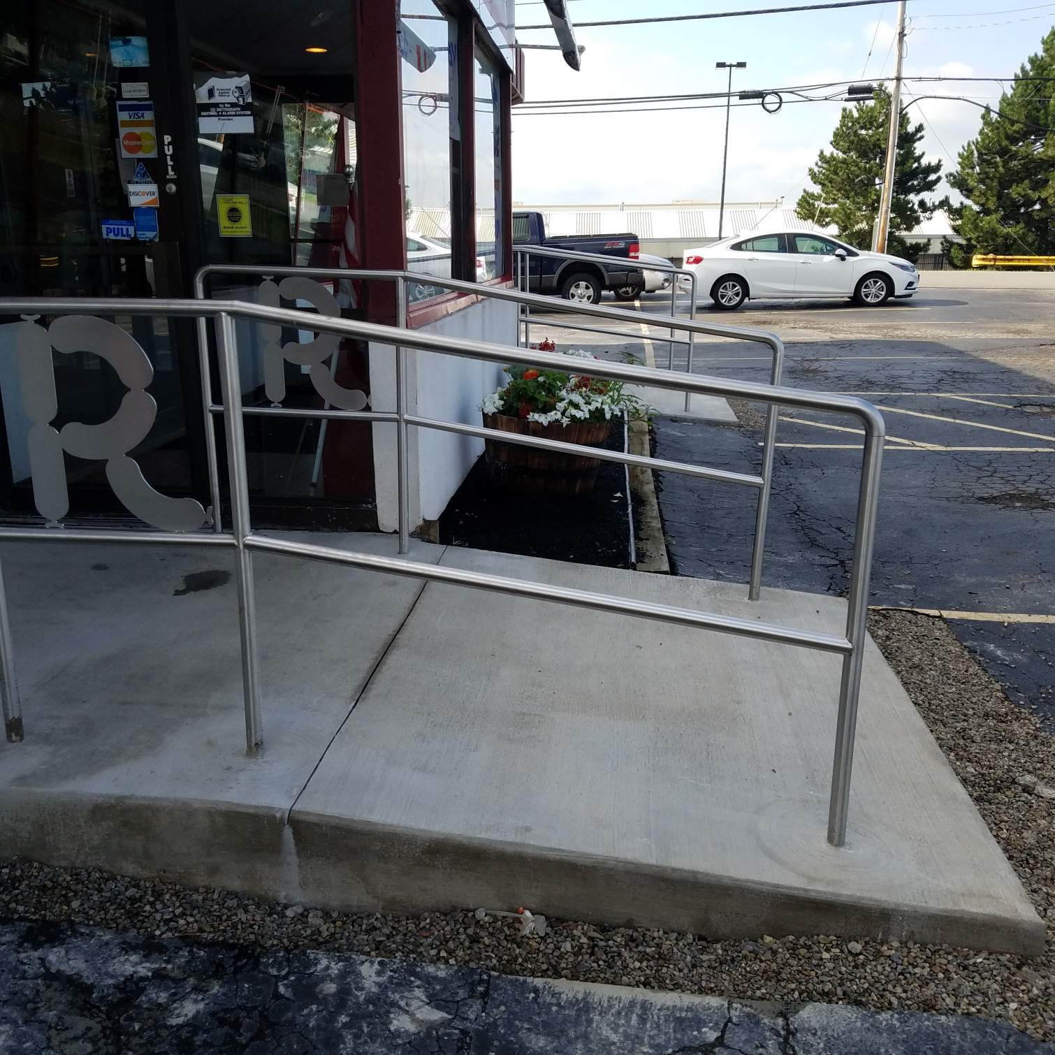Bear Metal Works custom fabricated stainless steel handrails for the entrance to Redlinski Meats on Walden Ave. complete with a laser cut out of their infamous "R" logo.