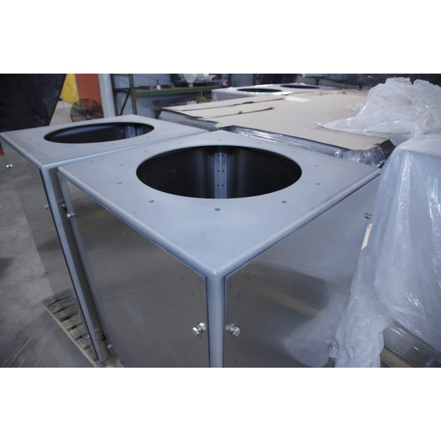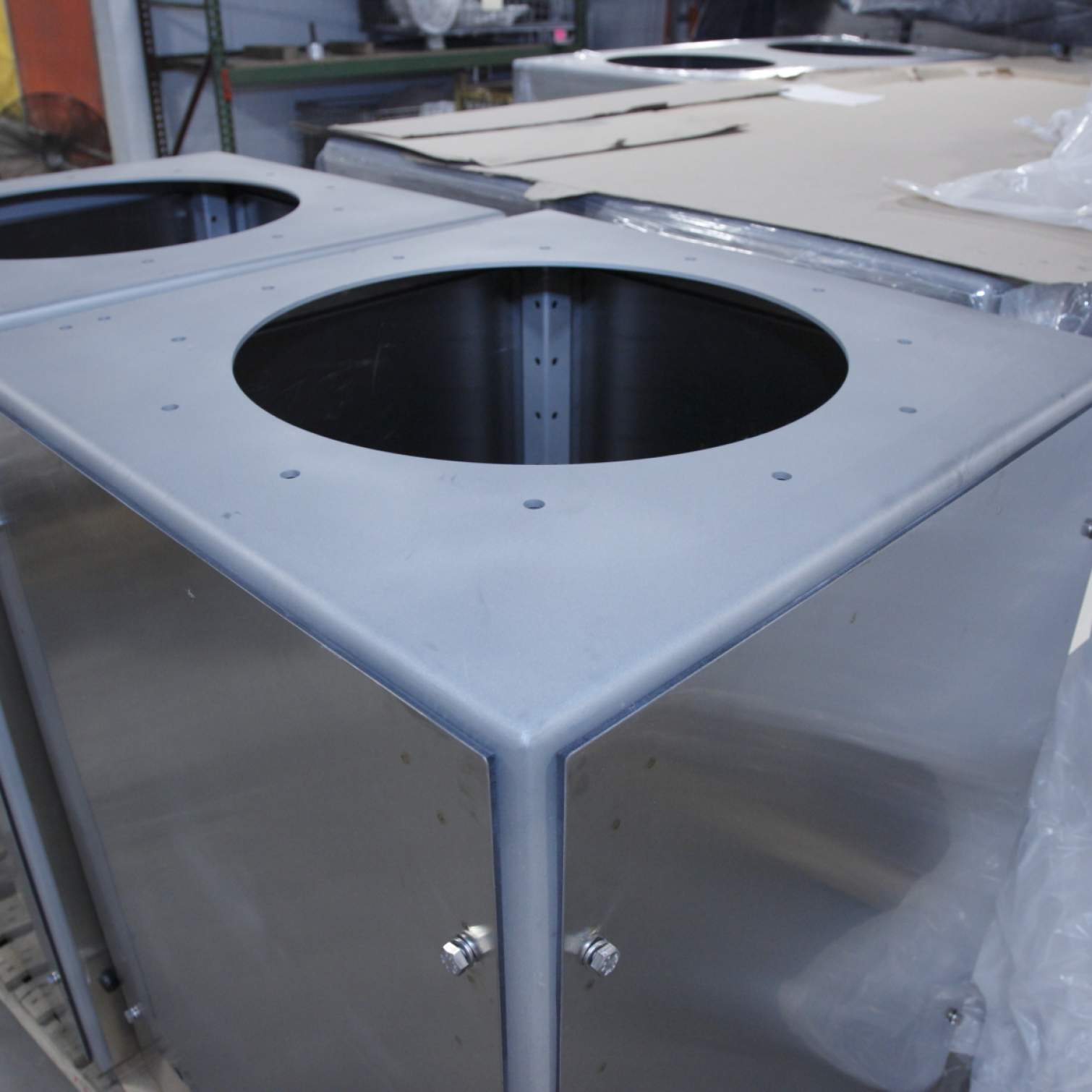Another one of Denler Stainless’ weekly products are stainless steel nuclear cabinets for a local manufacturer. These custom cabinets are completely welded thick gauge stainless steel and air tight panels are put on them once complete. These units are bead blasted once complete and shipped to the customer where they install electrical brackets and components inside them. These units are built into the ground and walls and obtain certain measurements like earthquakes.