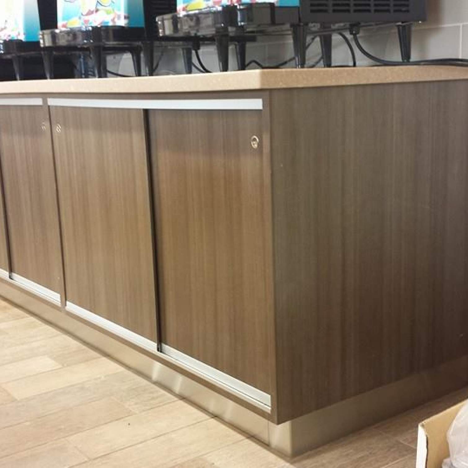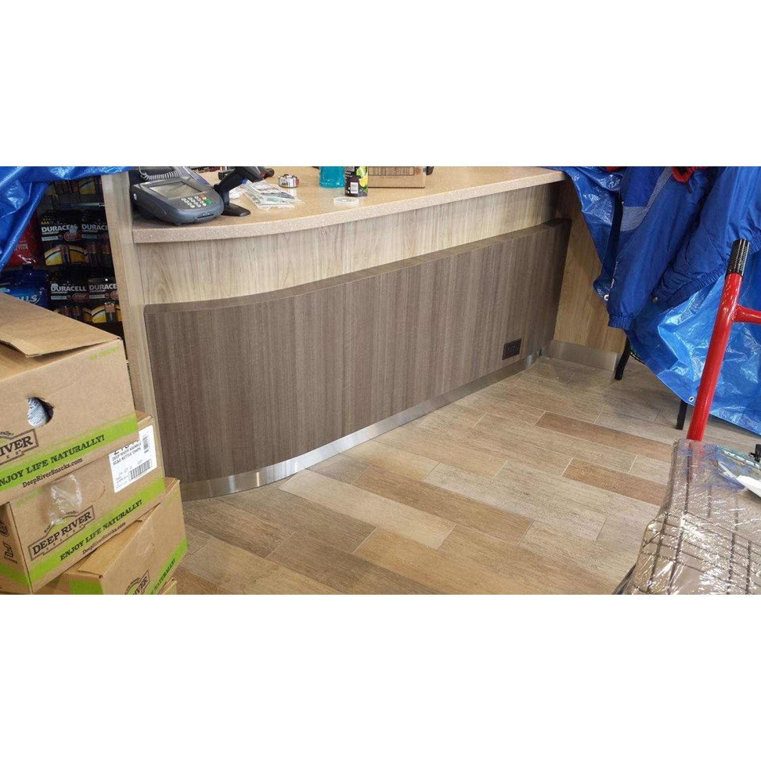 Bear Den Services installed stainless steel trim that we fabricated in house for molding underneath counters at a local Delta Sonic. All these pieces were sheared and formed to size then glued into place for the customer.